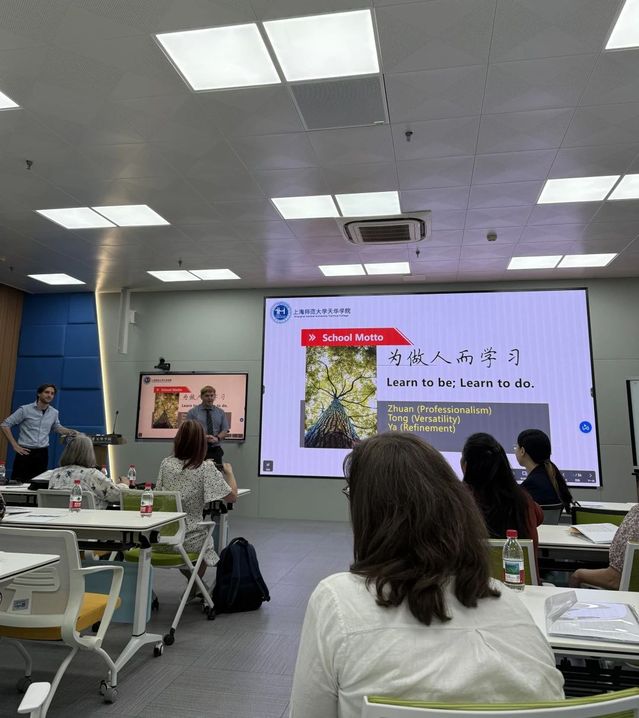 在入校培训会上,国交处老师与外教们分享了学校的校训“为做人而学习” 以及 “专、通、雅” 人才培养目标的内涵,还详细介绍了各类教学设备的功能与使用方法,为即将开始的授课做好充分准备。通过这次校园游览与培训,外教们对学校的教学环境和设施有了更深入的了解,也为后续的授课奠定了良好的基础。