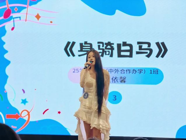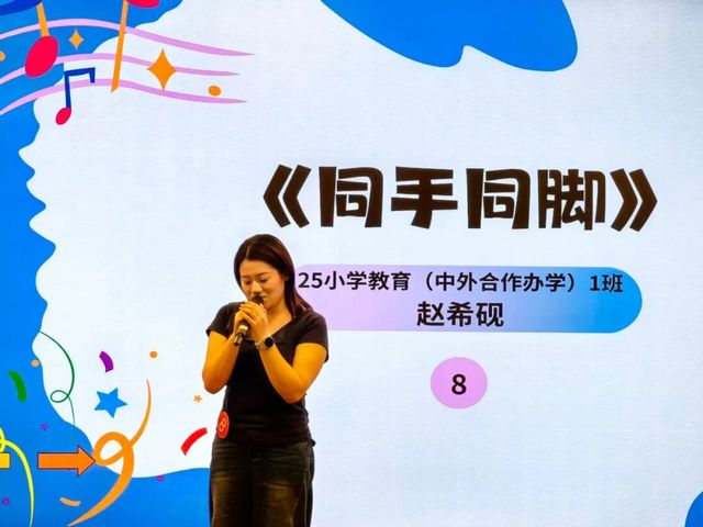 在紧张刺激的计分过程中,由24小学教育(中外合作办学)2班的蒋星潼带来串场节目《乌兰巴托的夜》。歌声自带辽阔意境,将草原夜色的静谧与悠远唱进人心,瞬间拉满氛围感,抚平了现场紧张的气氛。