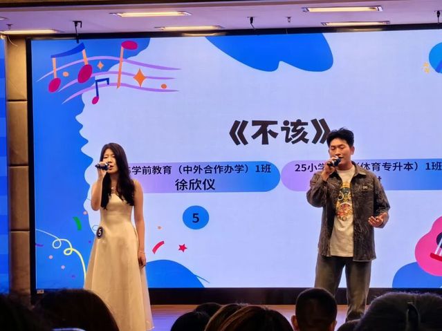 第五组由徐欣仪、邱棋演唱《不该》。高低音配合默契,情感层层递进,完美还原了歌曲里的遗憾与怅惘。