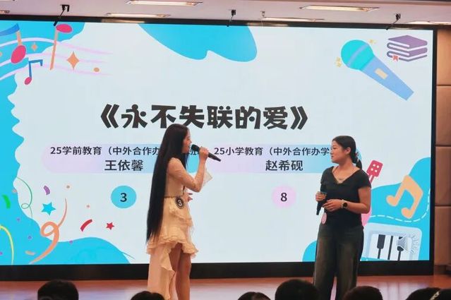 (图片5:第三组王依馨、赵希砚演唱《永不失联的爱》)