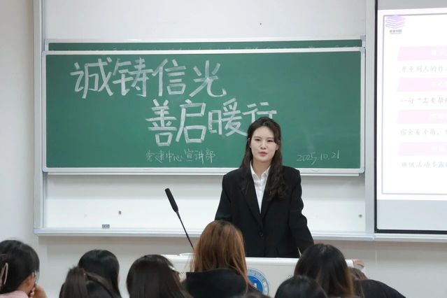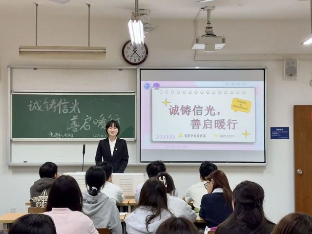 为进一步深化教育学院青年学子对社会主义核心价值观的理解与践行,引导大家在日常学习生活中将“诚信”与“友善”内化于心、外化于行,教育学院党建中心宣讲部于10月21日面向全院学生开展了以“诚铸信光,善启暖行”为主题的进班宣讲活动。