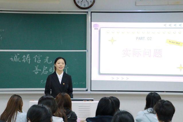 宣讲伊始,宣讲者以小游戏“看图猜词”引入主题后,从理论层面阐述了“诚信”与“友善”的核心内涵及其个人成长与社会交往中的重要意义。宣讲者指出,“诚信”是立人之本,“友善”是和谐之基,二者共同构筑起健康人格与和谐关系的坚实支柱。