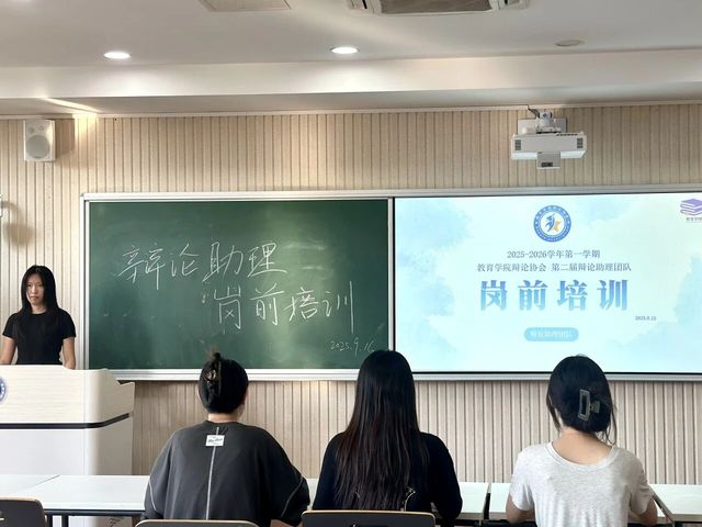 为落实我校“三抓三坚持”育人理念,有序推进学院辩论训练开展、提升助理团队素养,协助带训辅导员做好指导工作,教育学院辩论协会第二届辩论助理团队于2025年9月16日、9月23日在光华楼204教室,依次开展岗前培训会、工作部署会及破冰活动,为新学期辩论助理工作筑牢根基、明确方向。