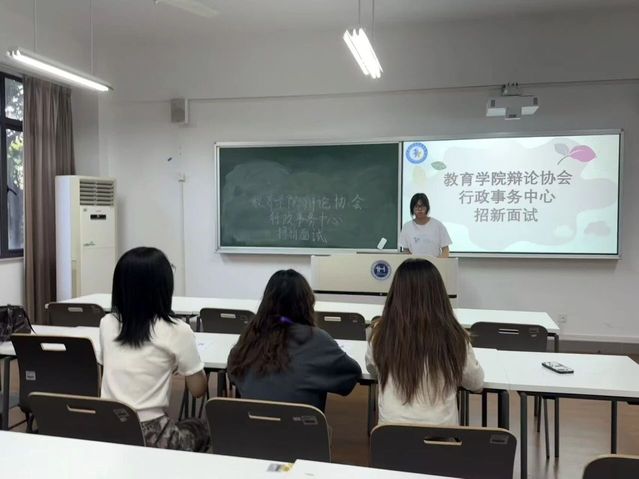 辩论场上的唇枪舌战、思想交锋,一场场精彩辩论的背后,有一个默默运转的“幕后枢纽”——这就是教育学院辩论协会行政事务中心。为给协会注入新鲜血液、保持组织活力,推动辩论事业的持续发展,广泛吸纳具备热忱与才能的同学,教育学院辩论协会行政事务中心于2025年10月9日下午16:30,在光华楼215举行了新一届的招新面试,迎来了更多并肩同行的伙伴,开启了辩论协会行政事务中心新的精彩篇章。