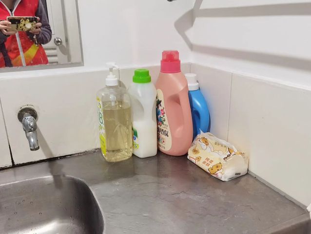 我随即带领寝室成员整改:用清洁剂擦洗饮水机恢复洁净,对台盆下物品分类整理、分开存放清洁用品并清除闲置纸箱,同时演示日常清洁与收纳技巧。