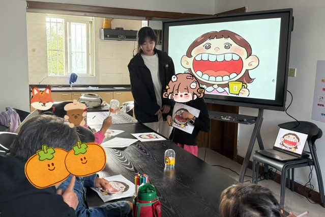 在绘本阅读活动中,志愿者精心准备以“保护牙齿”为主题的绘本,结合绘本内容设计趣味游戏,让小朋友们理解保护牙齿的重要性。