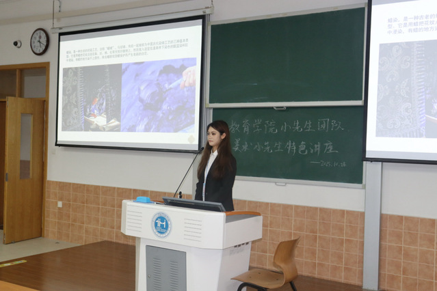 教育学院小先生团队美术辅导团于10月28日16:20-17:20在日华楼阶梯教室301开展了非遗讲座活动,由张赵涵和李嘉怡两位小先生主讲,内容主要聚焦非遗技艺的介绍与体验。