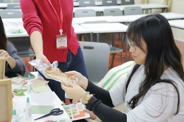 在拾秋落叶相框制作环节中,同学们以落叶与励志词句为材,创作出了融合工作热情与生活期许的独特作品,展现出部员的创意与初心。