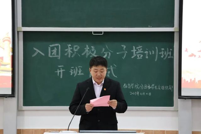 仪式伊始,教育学院分团委书记孙圣东以热情洋溢的讲话拉开培训序幕。他首先对全体学员积极追求进步、主动参与培训表示充分肯定,并指出参加入团积极分子培训是青年政治成长的重要节点,是迈向共青团组织的关键一步。