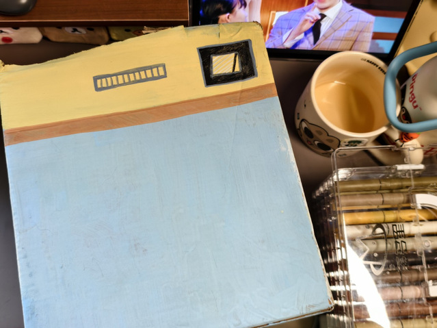 这款“冬日信箱”以复古相机为灵感,用纸板手工制作。主体采用温暖的黄与蓝配色,搭配可爱的企鹅、咖啡杯和雪花装饰,营造出冬日的温馨氛围。正面“冬日信箱”四字醒目,信箱口设计成相机镜头,既有趣味性又实用,是收纳信件与传递温暖的好帮手。