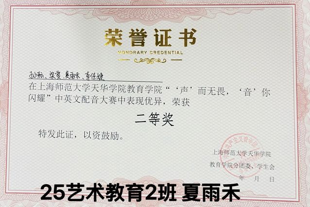当初我们宿舍四个抱着试一试的心态报名了配音赛,结果居然一路闯进决赛,决赛时抽中了最难的全英文篇目《头脑特工队》,因为语速比较快,大家当时可紧张了。但幸好我们几个人赛前有对台词调整发音和情绪,最后很荣幸拿到二等奖证书。原来试一试的勇气,加上咬着牙的较真,真能接住意外的糖~