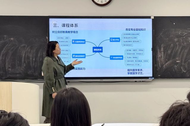 教育学院院长徐娟、语言文化学院副院长孙超向参会企业负责人及人力资源代表详细解读并深度分享了两院各专业的培养定位、课程架构等核心内容。随后,两位院长带领招聘单位参观专业实训中心,展示学子专业课程与实践环境并介绍了相关设施。此次参观助力招聘单位深入了解学院培养体系,见证师范生创新发展成效。