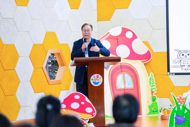 在随后的研讨交流中,园长茅琴美以《基于需求导向的幼儿园普特融合教育体系构建与实践》为主题,回溯园所融合教育的发展路径,强调在探索中学习、在实践中成长的重要性。专家金筱隽分享《幼儿园普特融合教育的探索与优化》,从体系到策略解析融合教育推进逻辑;专家徐玉杰从关键期发展的角度,阐述融合教育对普特幼儿双向赋能的价值。上海市陈鹤琴教育思想研究会领导胡道明强调,融合教育是实现教育公平的重要抓手,也是推动学前教育向更高质量、更具包容性发展的必然趋势。