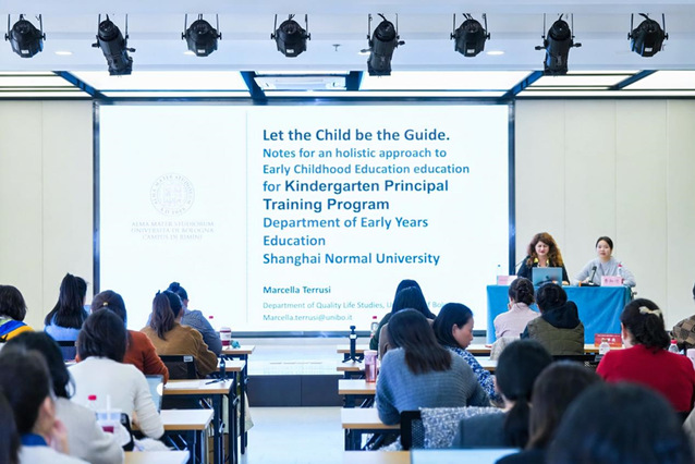11月13日下午,来自意大利的教育学博士、儿童文化与图像叙事研究者玛切拉·泰鲁西(Marcella Terrusi)女士带来题为“意大利教学方式与无字书绘本”的专题讲座与工作坊。作为长期活跃在国际儿童出版领域的学者,玛切拉的研究聚焦儿童文化、儿童文学史、阅读权以及全球公民意识之间的关联。在讲座中,玛切拉系统介绍了意大利幼儿教育中具有全球影响力的核心理念,包括蒙台梭利教育法、瑞吉欧教育理念以及《儿童的一百种语言》的教育哲学。她指出,“从做中学”是意大利早期教育的核心原则,儿童应作为学习的主动构建者参与其中;环境与材料则是支持儿童学习的重要媒介。她建议幼儿园通过创设开放、多功能的学习空间,提供丰富、可探索的材料,以全面激发幼儿的创造力、表达力与自主学习能力。在随后的无字书绘本工作坊中,玛切拉将讨论重点引向图画书在儿童发展中的教育价值。她指出,无字书凭借其“留白”特性,为儿童提供更大的观察、理解与表达空间,使教师能够更充分地倾听儿童的声音,支持其想象力与叙事能力的生长。在共同阅读多本无字书的过程中,玛切拉与园长们围绕图像叙事逻辑、教育内涵及教学运用展开深入讨论,帮助大家理解无字书在课程实践中的方式与价值。此次活动为园长们带来了一次跨文化的学习体验。大家不仅更系统地认识了意大利早期教育的理念和教学方式,也获得了将无字书融入园本课程的实践启发,为幼儿园课程创新与儿童表达力培养提供了新的思路。