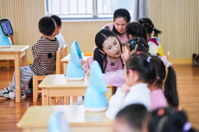 在户外活动观摩中,不同发展水平的孩子共同游戏、自然互动,呈现融合教育在日常生活中的真实样态。随后,园长们观摩了两节融合主题的集体教学活动。蔡雯雯老师执教的《小树叶》以差异化目标引导幼儿在拓印创作中收获多样体验;吴敏雯老师的《家里有什么》借助“童童AI”,营造了趣味、互动的学习情境,让普特儿童在合作交流中获得支持,展现科技赋能融合教育的温暖力量。