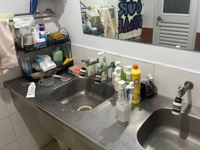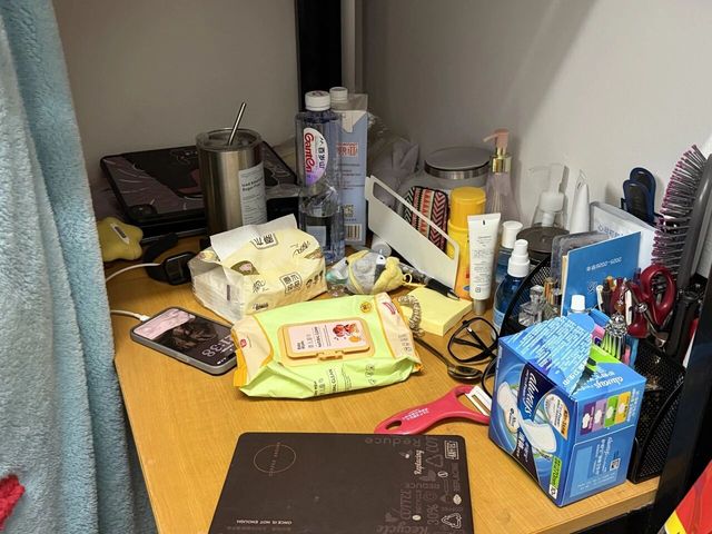 本次我与8-715寝室的结对工作,聚焦洗漱区域、卫生间等重点区域推进环境整改:对洗漱台零散摆放的清洁用品进行分类归置,同步擦拭台面及台盆残留污渍;将台盆下散落的盆具按尺寸分层叠放,规范空间利用;清理卫生间地面堆积的毛发,消除卫生死角。整改过程中,寝室成员主动配合,整改后寝室环境整洁度与舒适度显著提升。