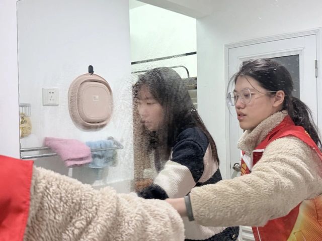 此外,镜子下沿位置因日常洗漱溅水而有些污渍,指出后,我们一同进行了擦拭。随后,我与同学们细致交流了近期的生活和学习状态,她们表示课程节奏相对轻松。同时,我结合近期降温明显,我也提醒大家要及时添衣。整体而言,通过此次结对工作,我对几位同学有了更清晰的了解,也为后续更有方向、更有温度地推进结对工作奠定了基础。