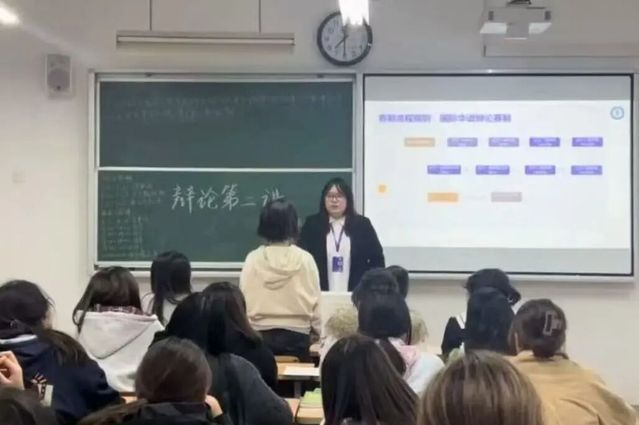 随后,车婧老师结合两队定位与比赛初衷展开针对性点评。她先肯定两队价值:“辩论队作为校赛实战主力,今天在立论构建、攻防转换中的实战技巧,为助理团队提供了鲜活的教学范本,尤其是对辩题核心矛盾的抓取、临场应变的节奏把控,都是新生教学中需重点传递的能力;而辩论助理团队作为新生教学的核心力量,在比赛中展现的逻辑梳理能力和对辩题的解读视角,能直接转化为教学中的引导思路,这种‘以赛磨课’的状态非常好。”接着她分别给出努力方向:“辩论队未来可在赛后主动向辩论助理团队拆解实战逻辑,比如把备赛时‘如何筛选核心论据’‘如何应对突发质疑’等经验转化为教学案例,帮助辩论助理团队更精准地传递实战技巧;辩论助理团队应借此次比赛总结教学要点,例如针对新生易犯的‘界定模糊’‘论证泛化’等问题,结合今日辩论队的示范设计专项训练,同时亦可主动向辩论队请教教学中遇到的实战难题,实现‘教学相长’。这场比赛的核心意义在于让实战经验反哺教学,期望两队以此目标为纽带,深化交流、实现双向赋能。”