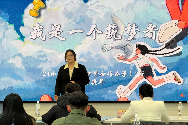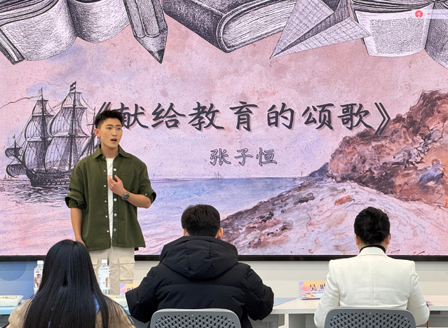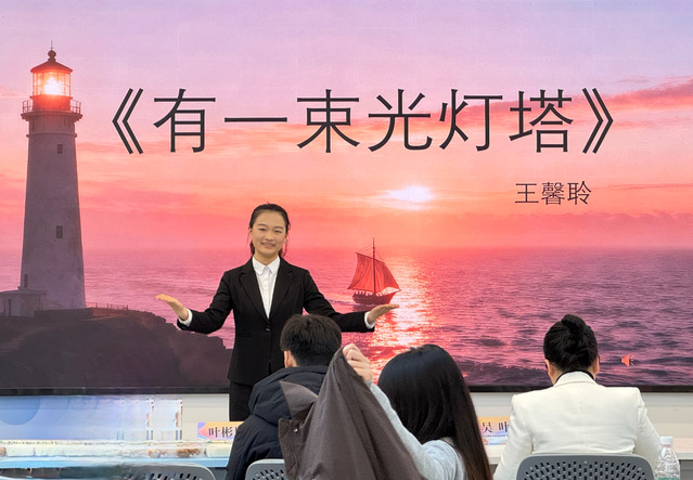 小学教育(中外合作办学)2班曹樊华同学带来的《我是一个筑梦者》以激扬文字、铿锵语调将本次决赛收束在新时代未来教师激越热切的理想中。当听她慷慨诵出“我秉烛夜读,是为接过先辈‘为往圣继绝学’的誓言;我负重前行,是为扛起我辈‘为万世开太平’的担当”时,崇高的使命感又一次在现场每一位师生心中回荡。