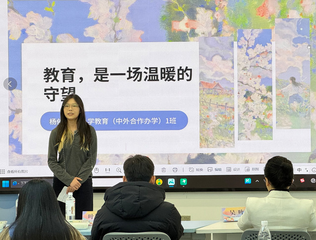 小时候望着讲台上的老师,心中充满敬仰;长大后手握粉笔,更懂得这份职业的分量。小学教育(中外合作办学)2班李炅同学饱含真情地朗诵她的原创作品《守望春天的种子》,充满温情地诠释了师者的爱是孩子成长路上的灯塔,而知识,是老师给学生最坚实的船桨。