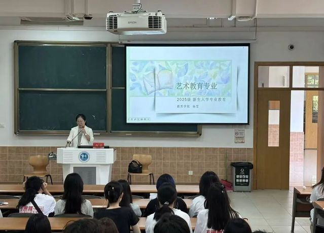 本次讲座由艺术教育专业主任杨莹老师主讲。杨莹老师为新生系统解读专业培养方案,并强调“师范为本、跨界融合”定位,阐明美术与音乐双方向并行课程体系,阐释“理论+实训+竞赛”三维培养模式及校企协同育人机制。她详细解答了跨学科实践、教师资格认证等问题,提出“夯实专业基础,强化教育创新能力”要求。最后,她寄语新生以艺载道,成长为新时代复合型艺术教育人才 。