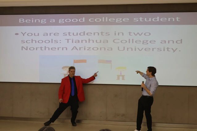 本次讲座由北亚利桑那学院党总支书记朱可、小学教育(中外合作办学)专业主任柴豪頔老师,以及外籍专家Dr. Scott和Dr. Luther共同主讲。朱可老师强调了中外合作办学项目意义,对新学期教学提出期望,并鼓励学生提升素养。柴豪頔老师全面介绍小学教育中外合作办学专业情况,阐释培养模式与特色,为学生学习发展指明方向。外教学术规范培训中,Dr. Scott与Dr. Luther以互动形式讲解学术要求与注意事项,助学生掌握要点。