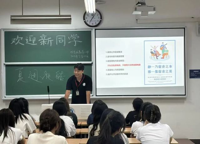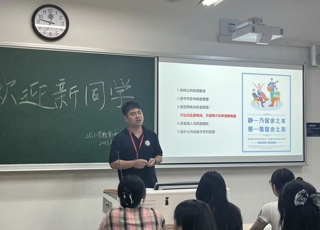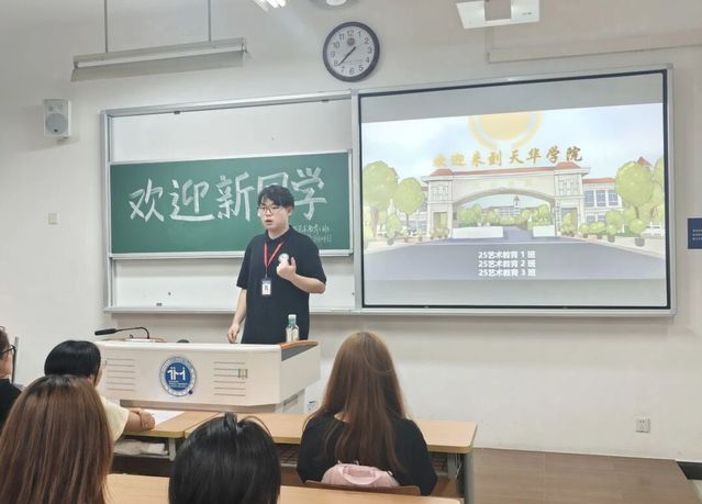 傍晚18:00,2025级各班正副辅导员带领班助理们于日华楼各教室开展新生破冰班会。班会从同学们渴望熟悉的校园基础设施开始,到“为做人而学习”的校训及“专、通、雅”协调发展的育人理念等内容,帮助同学们尽快具备成为“天华人”的实感。班助理组织新生开展了轻松有趣的破冰游戏,迅速拉近了同学们之间的距离。副辅导员以轻松诙谐的口吻提醒同学们开学之初的可能会遇到的各类诈骗事件,帮助大家培养自我保护意识。