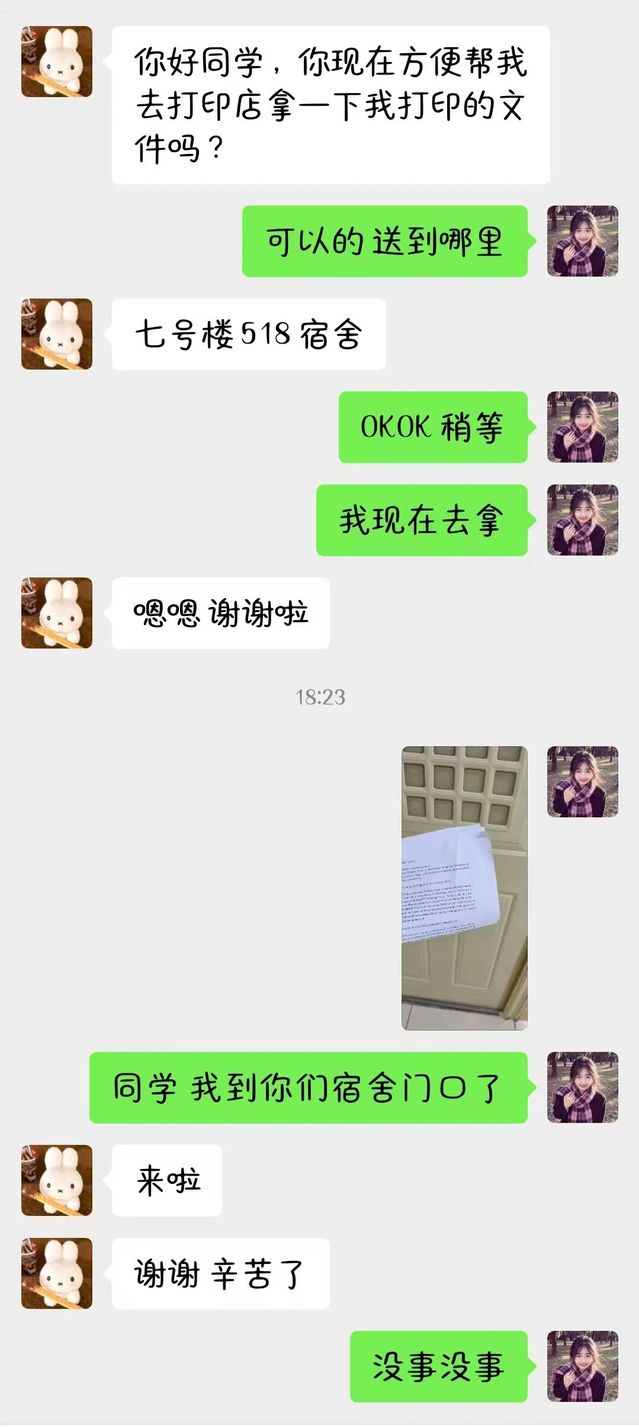 好消息——跨校区送材料、递文件我们也有专属志愿者帮忙!无论是公事还是私件,都能帮你跑腿代办,准时送达,帮助各项事务对接更加顺畅便捷。