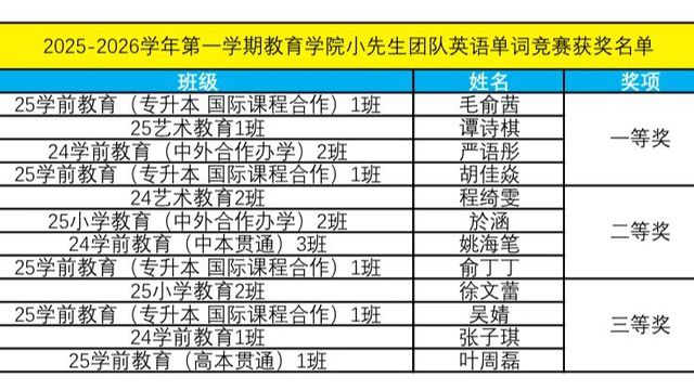 为激发大一大二学子英语单词背诵兴趣、夯实词汇储备,助力四六级备考,教育学院小先生团队英语辅导团于2025年11月24日(周一)16:15-17:00,在日阶203教室成功举办英语单词竞赛,以趣味比拼点燃学习热情,提升同学们的英语学习自信心。