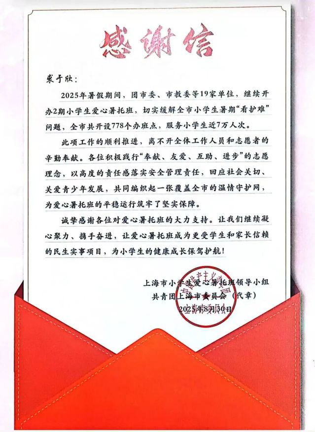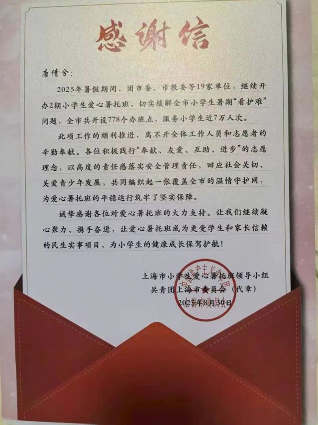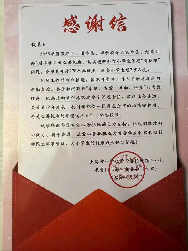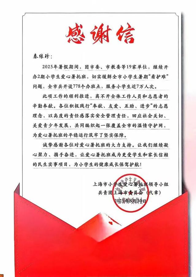 在2025年爱心暑托班中,我收获了责任与历练,见证了孩子们的欢笑与成长,体会到了陪伴的意义。希望这份爱心持续传递,让更多人感受美好。