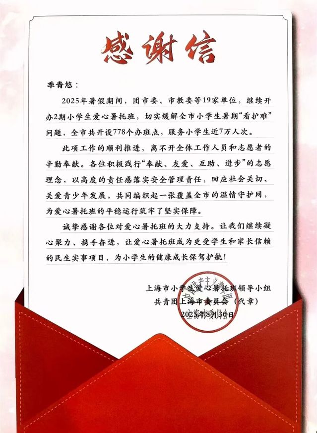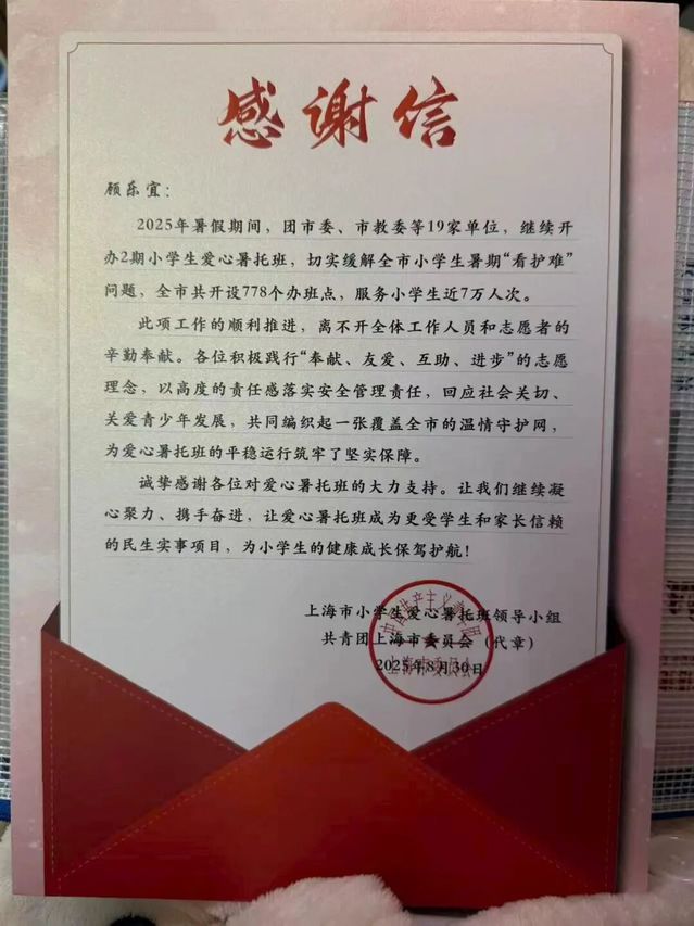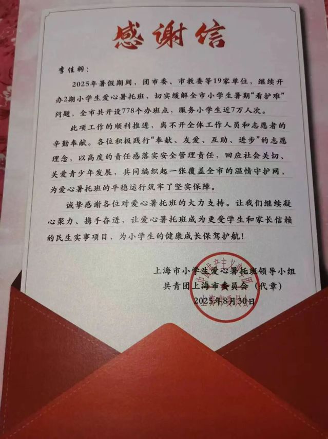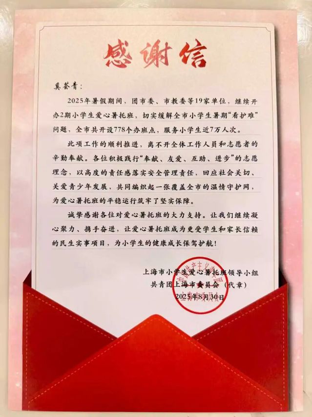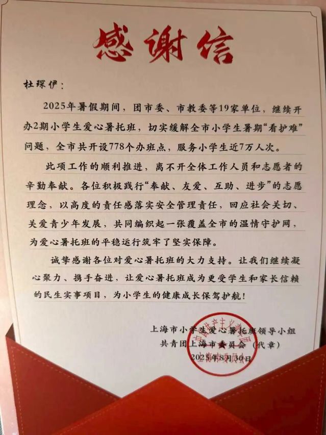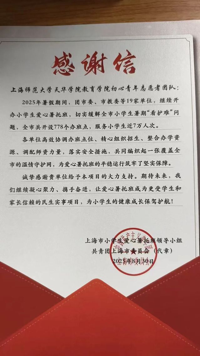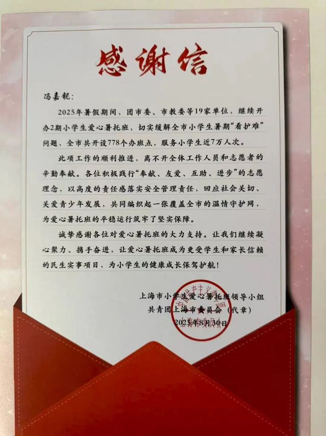 在2025年的暑假,我参与了上海市爱心暑托班项目。我全身心投入,与孩子们共度了一段充实而温暖的时光。这段经历不仅锻炼了我的责任心与应变能力,更让我深刻体会到,用爱心与耐心去呵护每一份童真,是何其有意义的一件事。