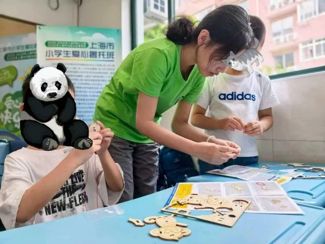 在上海爱心暑托班的志愿工作中,我陪伴孩子们开展手工与趣味课堂,俯身耐心指导、细致解答疑问,用陪伴与专注为孩子们的暑期添上温暖的色彩。