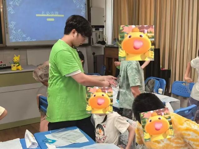 我在日常会协助暑托班的孩子们辅导作业、组织趣味活动、上课等内容,能快速适应暑托班的节奏,非常享受与孩子们相处的暑期时光!
