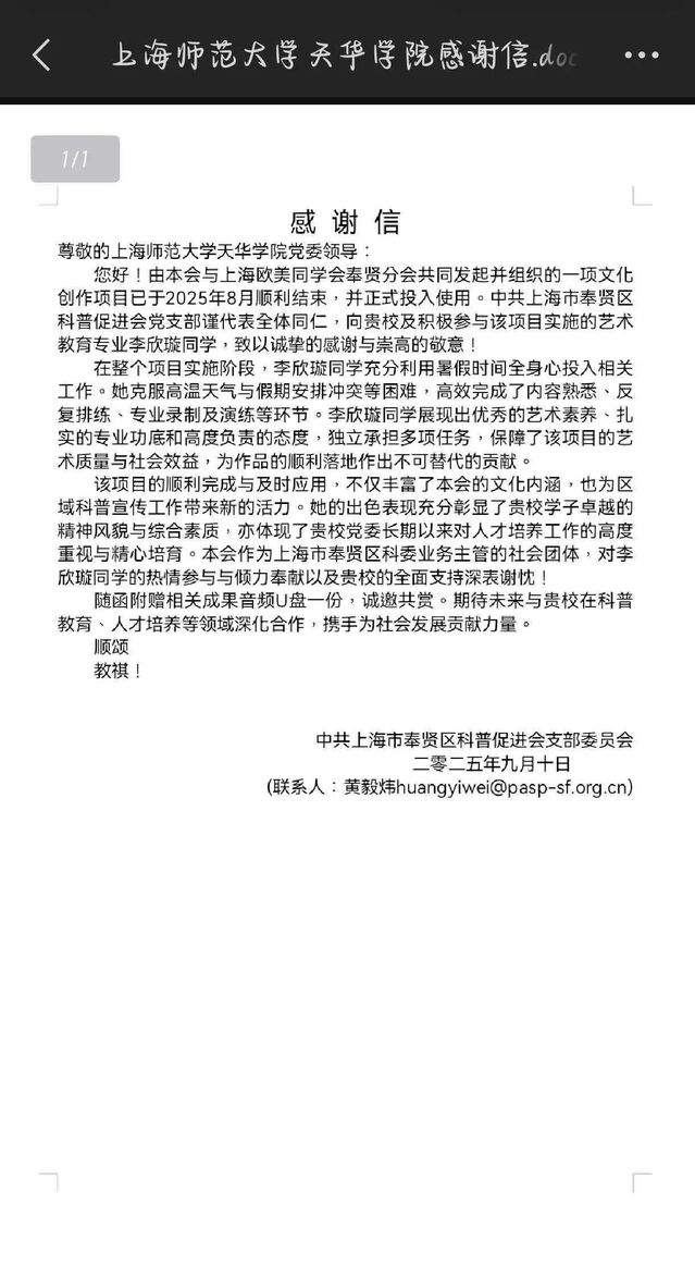 参与2025年上海国际科技艺术展演活动进行录制,编排公益歌曲《我们在这里》。