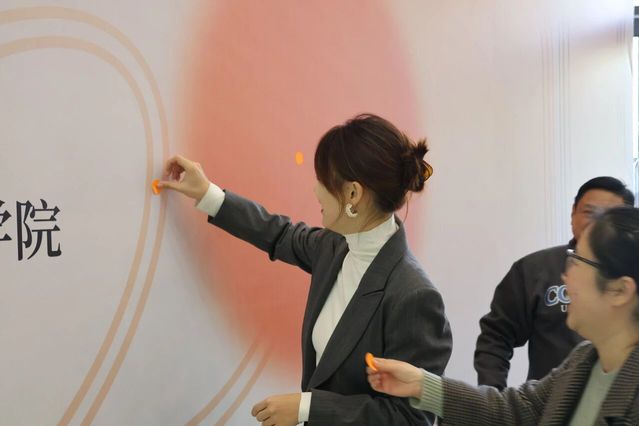 开幕式的核心环节极具象征意义。现场嘉宾与师生代表手持橙色、金色贴纸,将贴纸逐一贴在展板中央镂空的数字“20”之上。随着色彩逐渐填满轮廓,校庆二十周年的标志性图案被正式“点亮”,现场响起热烈掌声。这一环节不仅凝聚了全体师生对母校的祝福,更象征着大家携手并肩,共同开启学校发展的崭新篇章。
