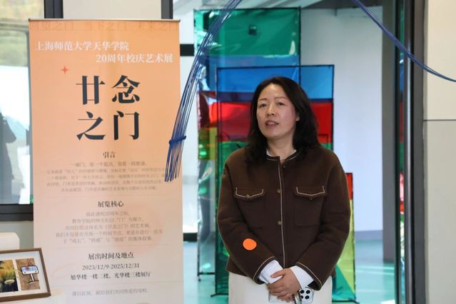 教育学院院长徐娟老师对展览的成功举办表示祝贺。她强调,二十年来学院始终坚守艺术教育与美育传播的办学方向,本次展览是学院办学理念的具象化表达,为校庆增添了浓厚的文化底蕴,也为师生搭建了交流学习的重要平台。