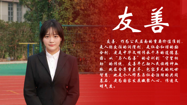 作为教育学子,我们对友善有着更鲜活的践行场景:课堂上主动为同学答疑解惑,课后帮因病缺课的伙伴补全笔记、梳理重难点;实训课上共享教学思路与课件资源,耐心指导同窗熟悉教具操作、打磨授课细节;宿舍里体谅彼此作息,在考试季互相打气、在失意时暖心开导;参与社区支教时,用温柔耐心陪伴特殊儿童、倾听心声,用专业方法呵护孩子心灵。这些日常点滴,既是我们待人接物的自然选择,更在践行中体悟到:友善是未来教育路上构建师生信任的桥梁,是培育学生健全人格的养分,终将通过教育实践传递下去,成为滋养校园生态、凝聚社会温情的重要力量。