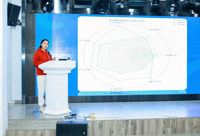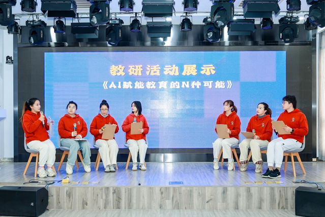 午后,科幼教研组以《AI赋能教育的N种可能》为主题开展教研展示,老师们聚焦AI在幼儿探究、教师教学、家园共育中的实践经验与难点,展开深度研讨。大教研组长张琦以《共建差异化教研生态,赋能教师团队成长》为题,分享科幼教研组的特色建设路径;邱丹燕、文灵芝、王春崴三位教师分别带来《数智洞察需求,赋能幼儿成长》、《云点笔,有效提升户外游戏活动中的一对一倾听》、《与数智同行:青年教师在教育场域》的实践案例,具象化呈现创新工具与数智思维的落地方式。