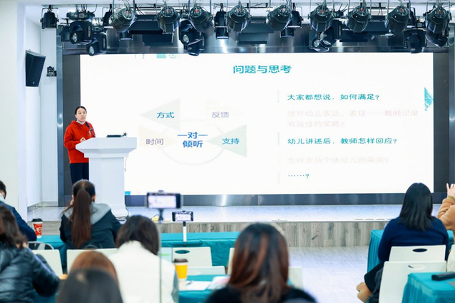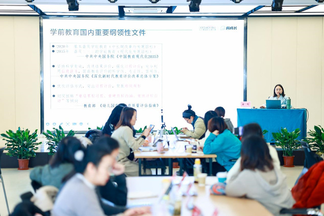 12月4日下午,安生教育集团学前教育中心主任童焰老师,以《观察—评价—课程反哺策略互研共享工作坊》为主题,聚焦幼儿园课程游戏化核心,为参与培训的园长们带来实操性指导。
