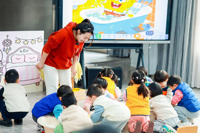 签到结束后,园长们移步户外场地,沉浸式观摩大班、小班户外运动活动。随后,中班个别化学习活动有序开启,园长们近距离感受科幼“以幼儿为中心”的互动支持策略,并且围绕活动设计与幼儿回应技巧展开即时交流。最后,园长们一起观摩了小班集体教学活动《有趣的海绵宝宝》,鲜活的情境创设与幼儿的主动参与展现了科幼教学活动的生动张力。