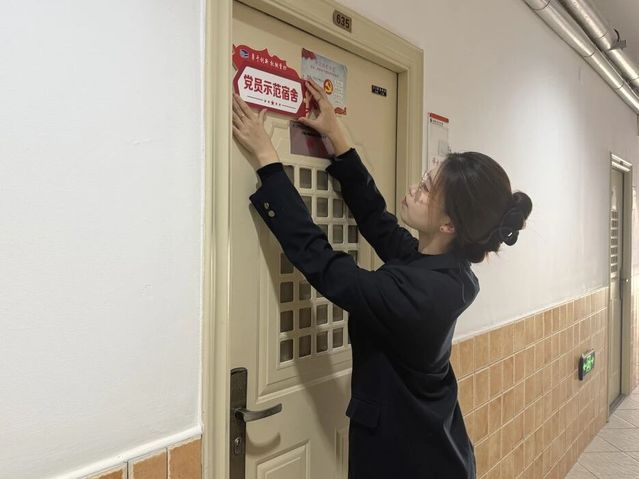经综合考评筛选出兼具示范力的优秀党员宿舍,举行挂牌表彰仪式,切实推动学生党员“亮身份、立标杆”——不仅在宿舍环境上作示范,更在学业互助、思想凝聚等方面树榜样,夯实宿舍育人阵地的多元建设基础。