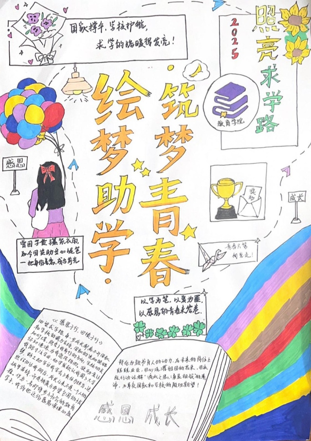 恭喜所有获奖同学!这些优秀作品,让更多学子们真切感受到了创意的力量与奖助政策的温度。此次大赛不仅为学子提供了展示才华的平台,更让“勤奋学习、励志成才、心怀感恩” 的校园氛围愈发浓厚,是创意与初心碰撞出的精彩成果。愿这份正能量持续传递,让每一位学子在奖助政策的护航下,勇敢追逐青春梦想!