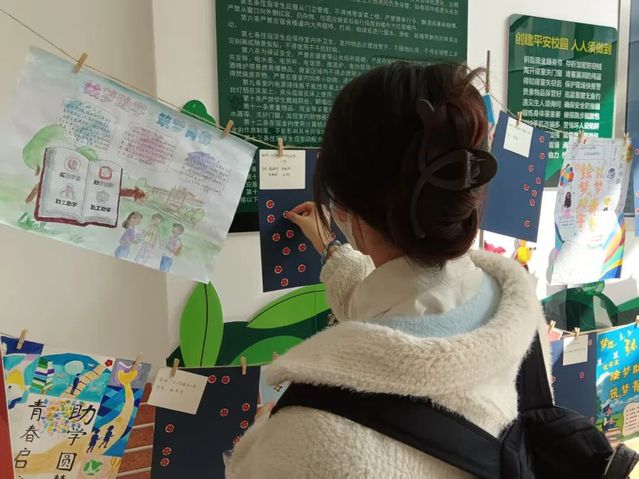 一笔一画绘初心,一票一选鉴精彩!12月11日中午,教育学院“绘梦助学・筑梦青春”奖助海报设计大赛线下社区投票环节正式落下帷幕。仅用午间片刻,七号楼党站的专属展位前人气爆棚,同学们趁着午间课余间隙踊跃参与,用热情为优秀创意赋能,让奖助政策在校园里留下鲜活印记。