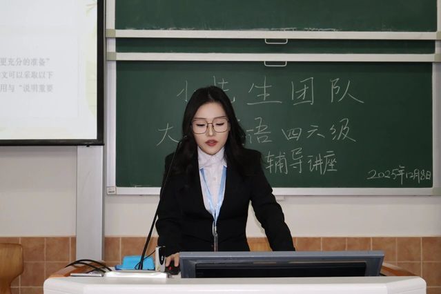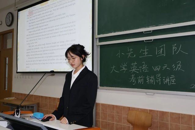 为助力大家高效冲刺12月四六级考试,大学英语四六级考前辅导讲座于12月8日(周一)16:20-17:20在日阶302顺利开讲!由李沛蓉、黄杨慧、罗佳怡三位主讲人分模块拆解技巧。