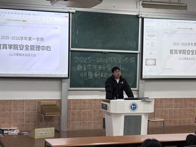 岁月如梭,2025-2026学年第一学期已接近尾声。在教育学院党总支的引领下,安全管理中心全体部员凝心聚力、履职尽责,扎实推进各项安全保障工作,为学院师生筑牢平安防线。为复盘本学期工作成效、细化后续任务部署,安全管理中心于2025年12月17日16:20在日阶202隆重召开期末总结大会。