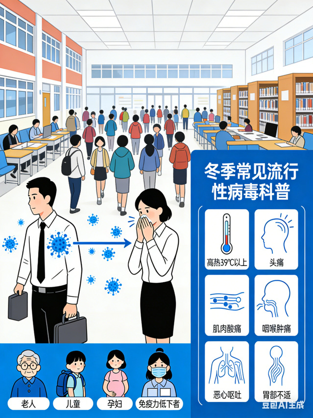 冬季常见的流行性病毒多通过飞沫、密切接触传播,感染后常出现发热、咳嗽、乏力等症状,而甲流是其中传播力较强的一种。