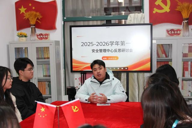 为进一步复盘本学期安全管理工作,在总结实践经验的同时,深刻反思工作短板、精准查摆现存问题,切实夯实后续工作基础,教育学院安全管理中心于2025年12月15日16:20在六号楼党站组织开展本学期反思研讨会,全体干部齐聚一堂,在复盘总结中明晰方向,共同推进部门发展。