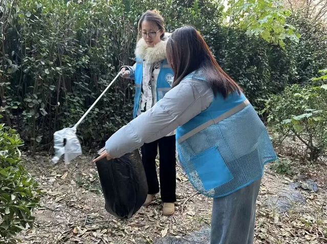 抵达北门外绿化带后,志愿者们明确分工、默契协作,秉持严谨态度排查卫生死角,有序开展废弃物清理与垃圾分类处理工作。