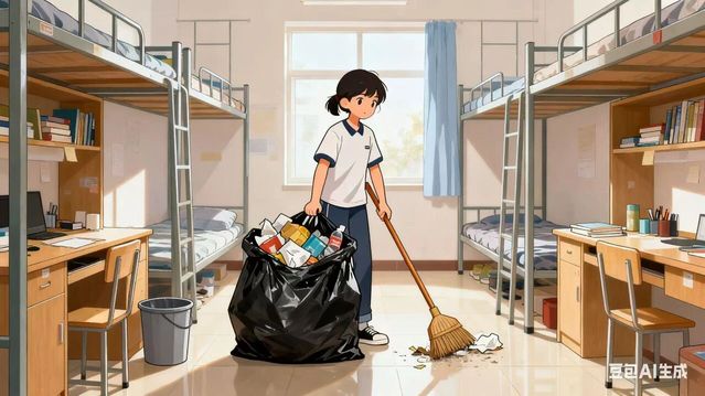 (图片2:AI生成打扫寝室)