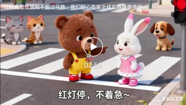 (三)AI赋能幼儿科普视频《小熊嘟嘟和小兔跳跳的安全过马路大冒险》